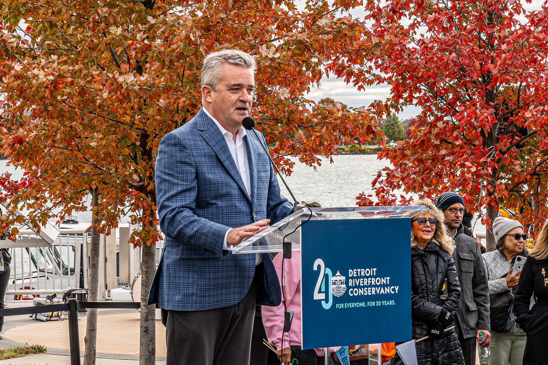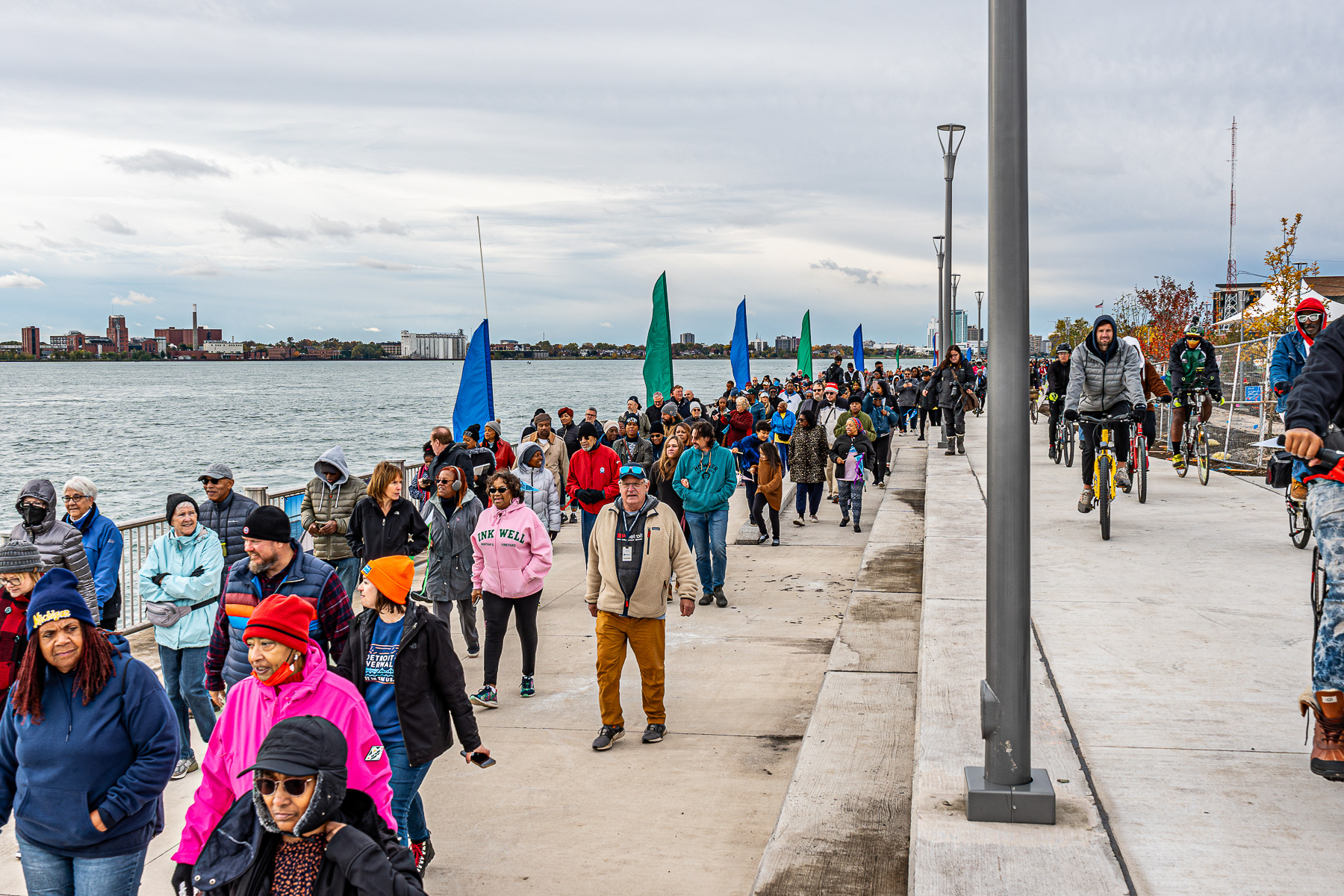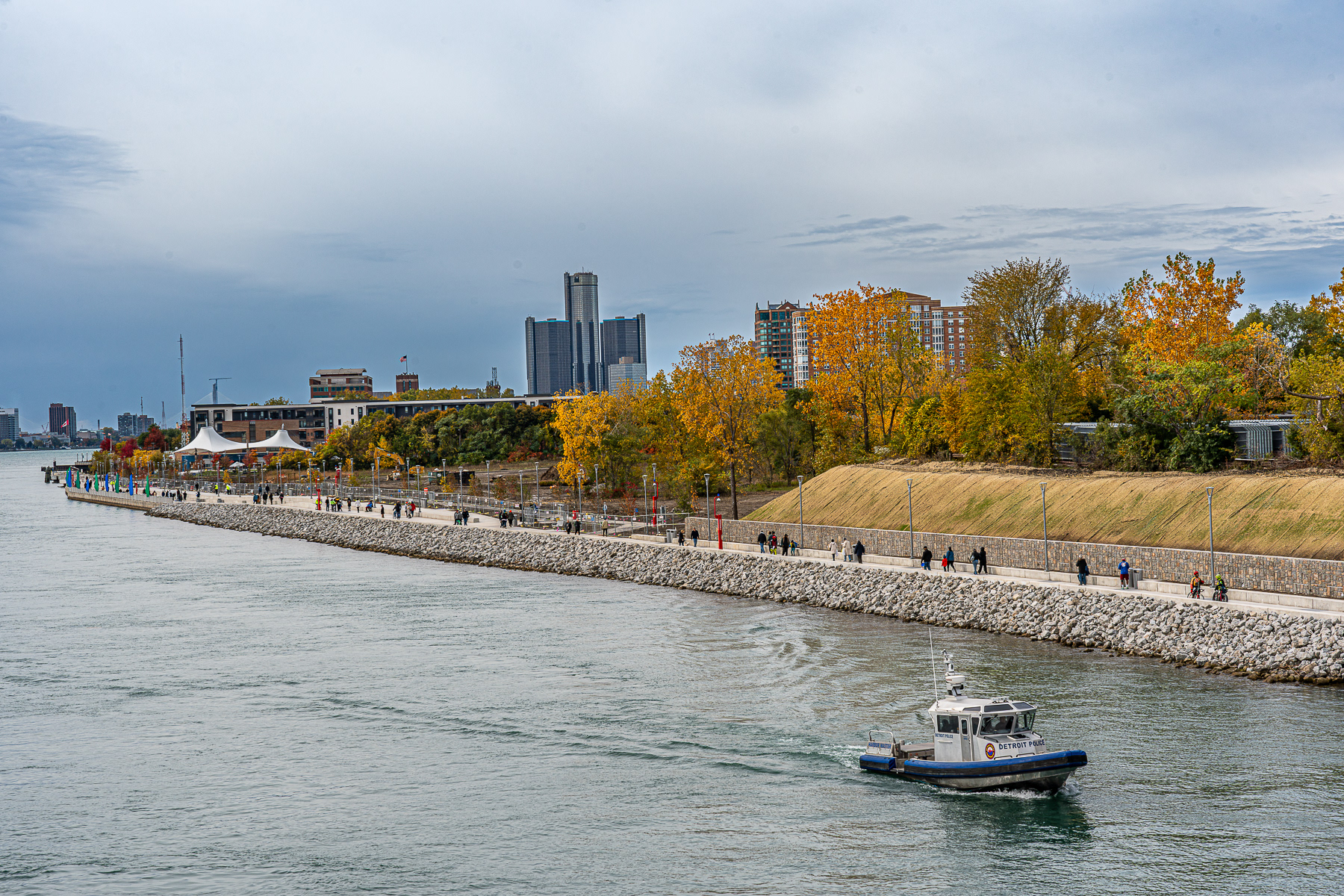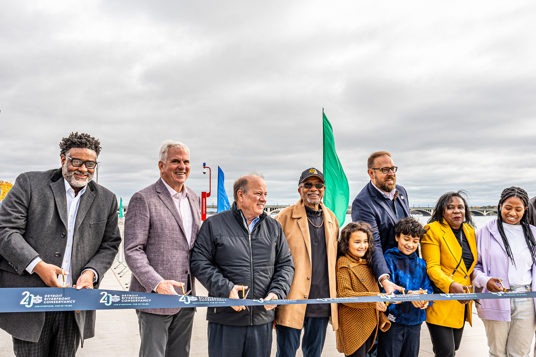 The Detroit Riverfront Conservancy has been named the best walkable riverfront in the country by USA Today a few years in the row. Uniroyal Promenade grand opening ceremony & Shimmer on the river events.