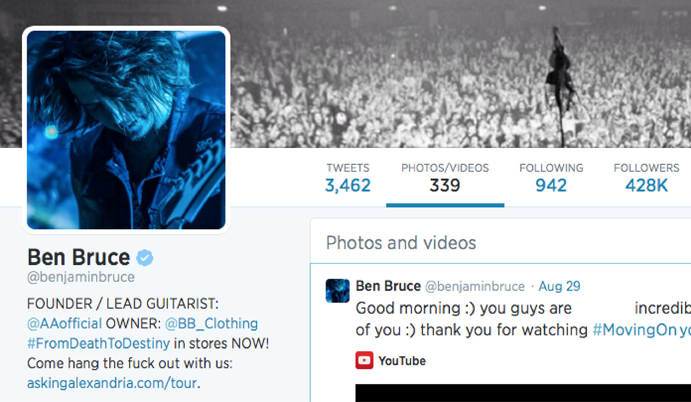 *Ben Bruce of the band Asking Alexandria - profile image*